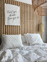Laat je inspireren met onze canvas doek met de krachtige boodschap "First you dream. Then you do.". Deze stijlvolle wanddecoratie herinnert je eraan je grootste dromen werkelijkheid kunnen worden. De perfecte motivatie voor elke ruimte in huis. Gemaakt van ons hoogwaardige canvas. De quote zal je stimuleren om je doelen na te streven. Of je hem nu op kantoor, in je slaapkamer of woonkamer hangt, deze decoratieve poster creƫert een warme en inspirerende sfeer.