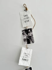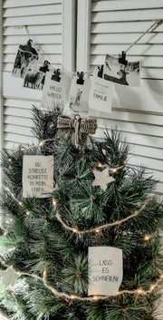 Creëer een warme en gezellige sfeer in huis met deze stijlvolle winterslinger, uitgevoerd met mini canvasprints. De slinger bestaat uit meerdere kleine doeken met winterse afbeeldingen en inspirerende teksten. Dankzij het natuurlijke touw en de minimalistische uitstraling past de winterslinger perfect in ieder interieur, van modern tot landelijk. De kaartjes zijn A7-formaat (10,5 x 7,4 cm) en worden geleverd met een touwtje en mini knijpers.