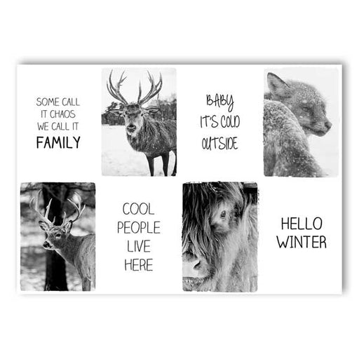 Schaffen Sie mit dieser stilvollen Wintergirlande mit Mini-Leinwanddrucken eine warme und gemütliche Atmosphäre in Ihrem Zuhause. Die Girlande best...