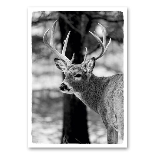 Bring the peace and elegance of nature into your home with this refined black-and-white portrait of a red deer. The impressive antlers and the anim...