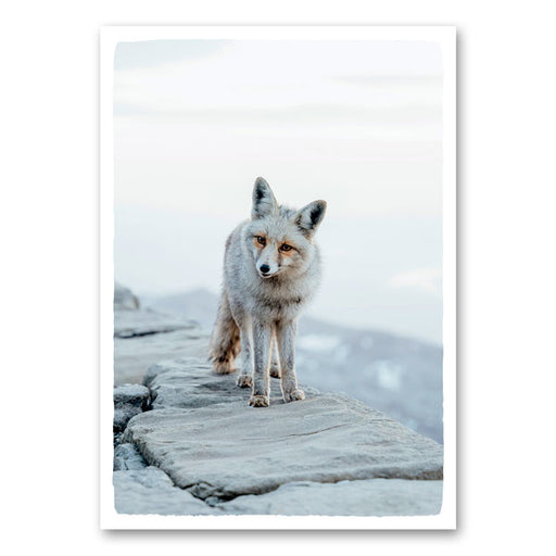 Voeg een vleugje wilde elegantie toe aan je interieur met deze sfeervolle canvasprint van een vos. Gefotografeerd op een rotsachtige bergkam met ee...