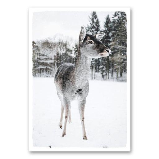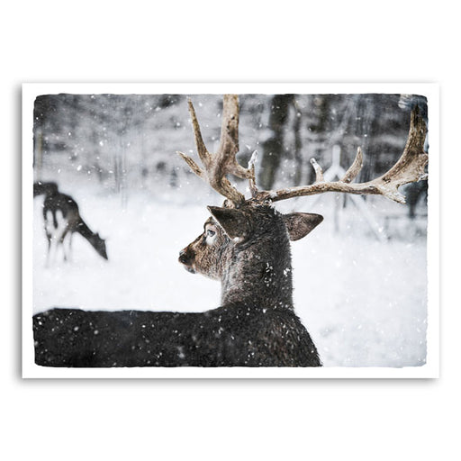 Bring the serene beauty of winter to life in your home with this beautiful canvas depicting a deer in a snowy landscape. The soft snowflakes, the t...