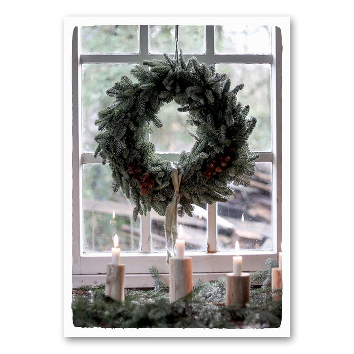 Bring the warmth of winter into your home with this beautiful canvas print featuring a Christmas wreath hanging in a window. The image shows a traditional, greenery-filled Christmas wreath, delicately decorated with red berries and an elegant bow, hanging invitingly in front of a large window. The natural light shining through the window creates a magical contrast with the rich, warm green tones of the wreath, creating a cosy and cosy winter atmosphere. Perfect for the festive season , this high-quality canvas print creates a timeless look that you can hang up year after year to bring the Christmas spirit into your home. Add a touch of festive charm to your interior with this atmospheric Christmas decoration!